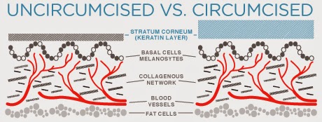 Solda sünnetsiz- sağda sünnetten 5 yıl sonra nasırlaşmış ve duyarsızlaşmış cinsel organ baş kısmı, Stratum Corneum dediğimiz, nasır dokusudur.